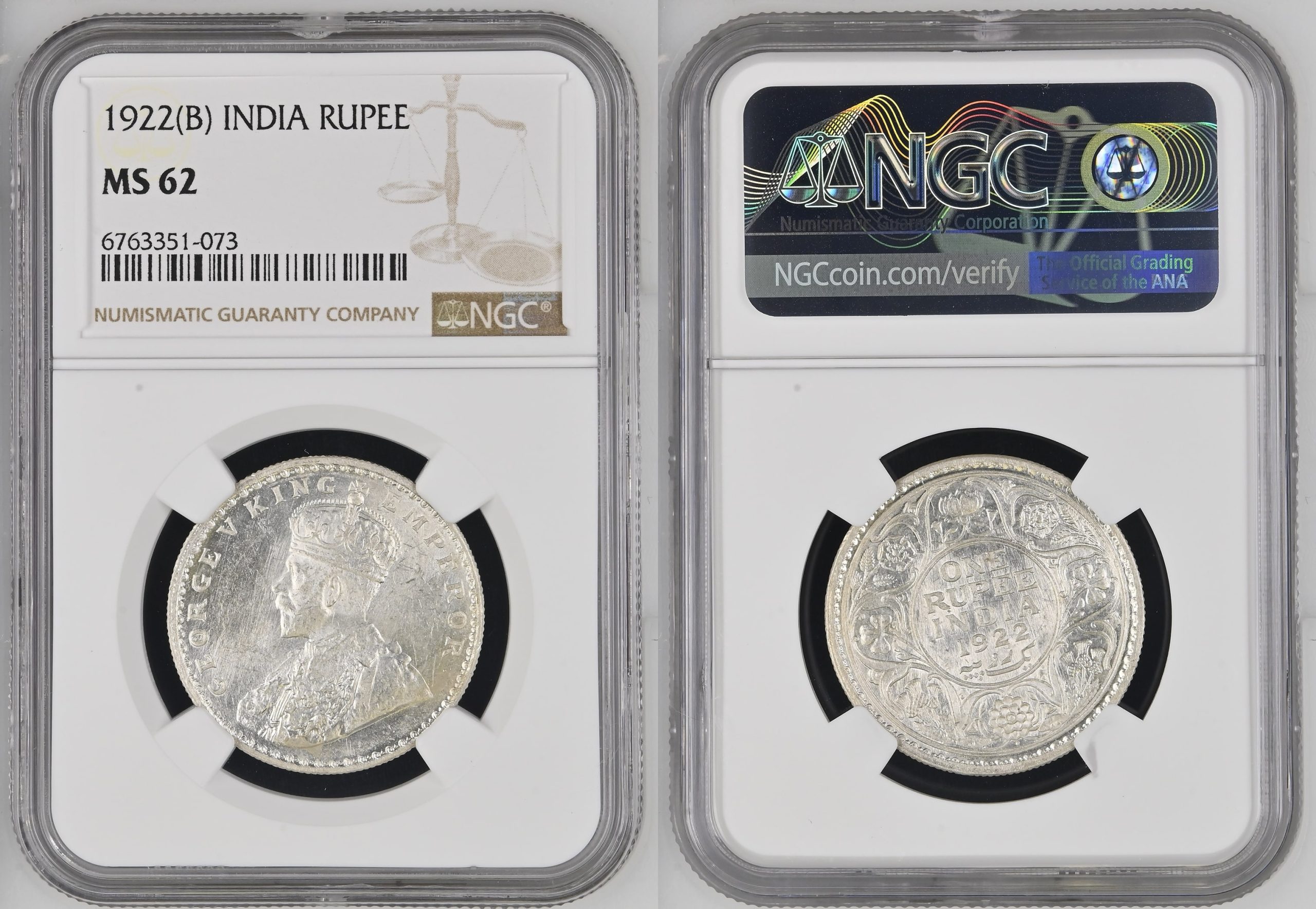 British India George V 1922 AD Bombay Mint Silver Rupee NGC6763351-073 MS 62