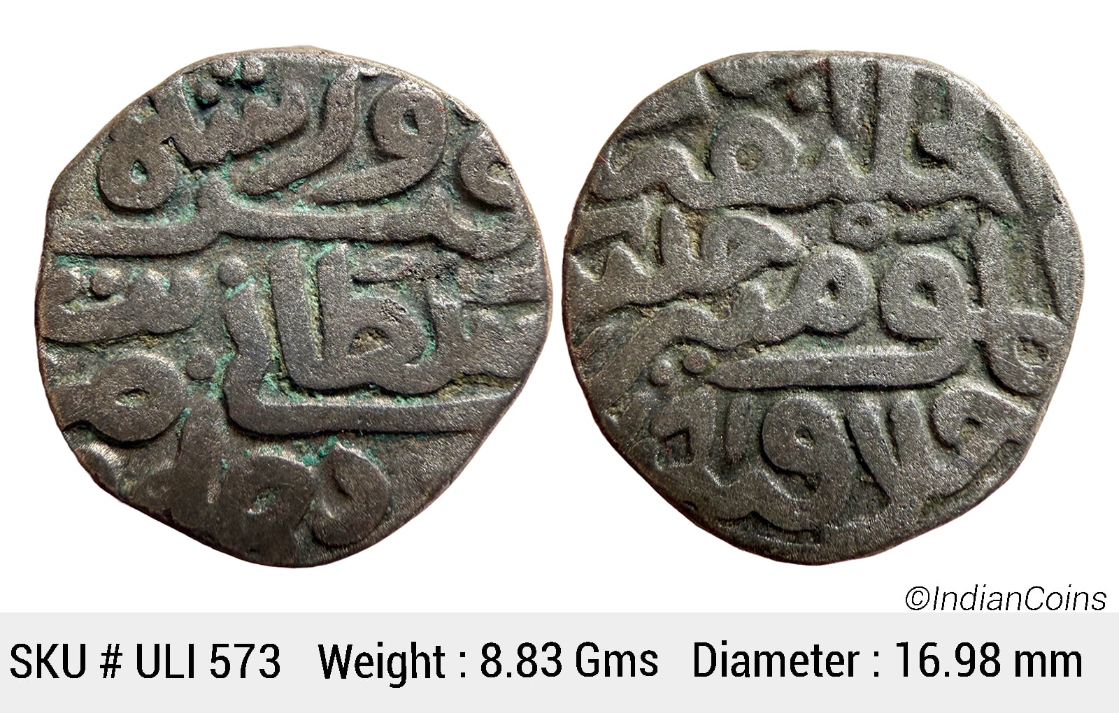 Delhi Sultan, Firuz Shah Tughluq (AH 752-790, 1351-1388 AD), Billon Tanka, 8.83 gms, 16.98 mm, Hadrat Delhi Mint (mostly visible at bottom on rev), AH 781, with the name of the Caliph Abu `Abd Allah al-Mutawakkil I, Obv: Firuz shah sultani darabat bi-hadrat dehli, Rev: al-khalifat abu ‘abd allah khulidat khilafatuhu, G&G # D475, very fine, scarce. ULI 573
