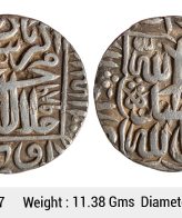 East India Company, Bengal Presidency, INO Shah Alam II (AH 1174-1221, 1759-1806 AD), Silver Rupee, 11.10 gms, 22.98 mm, Muhammadabad Banaras Mint, stylized fish and rising sun on obverse, Darogah’s mark of flower on reverse, AH 1224, RY 17/49, KM # 40.1, very fine, scarce. ULI 806