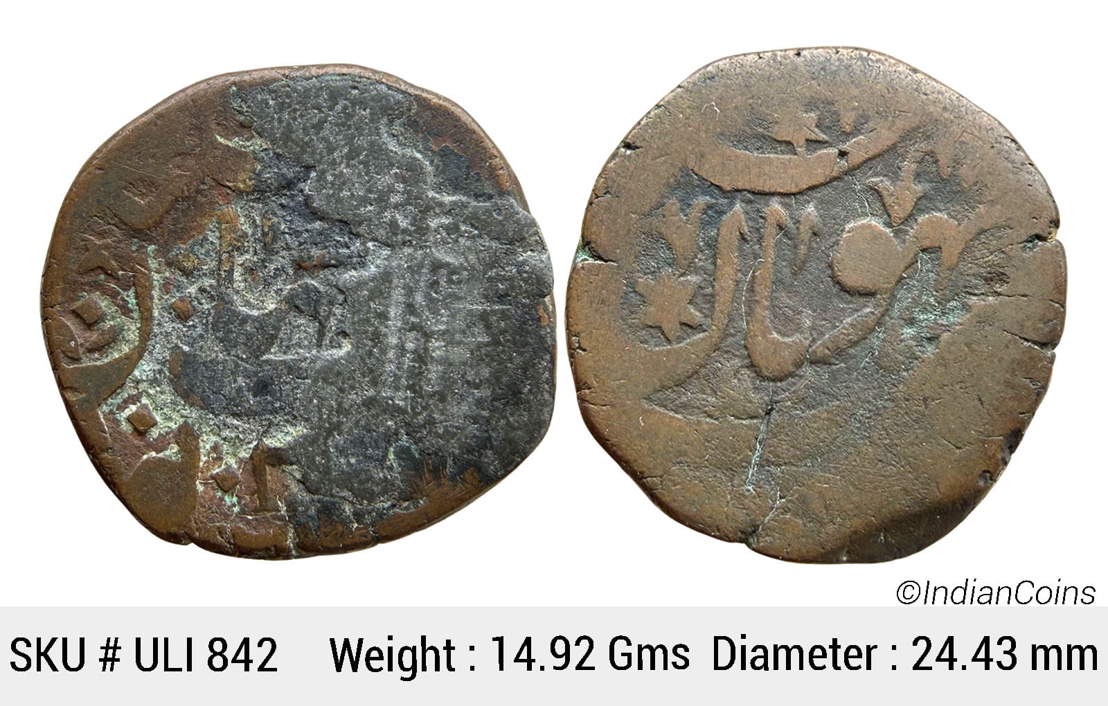 Indian Princely States, Bhopal State, Shah Jahan Begam (AH 1285-1319, 1868-1901 AD), Copper 1/2 Anna, 14.92 gms, 24.43 mm, Bhopal Mint, KM # Y 17.1, very fine, scarce. ULI 842