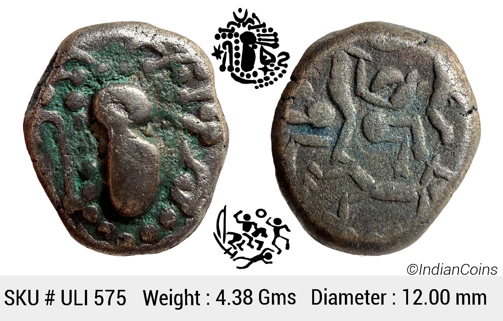 Paramaras of Malwa, (13th century AD), Gadhiyya paisa, Debased Silver (Billon) Dramma, 4.38 gms, 12.00 mm, Degenerate Indo-Sasanian Gadhiyya Type head to the right on the obverse with “sri” to the left of the bust & a “fish hook” to the right of the effigy, Interestingly the reverse shows a war / battle scene depicting a horseman brandishing a sword, Mitchiner attributed this coin type to the Silaharas of the Konkan, Although Deyell as well as Maheshwari assigns it to the Paramaras and Maheshwari also suggests it was issued to celebrate their recovery of Malwa in c. 1190. Deyell 167, Mitchiner Non-Islamic 649-52, fine, very scarce. ULI 575
